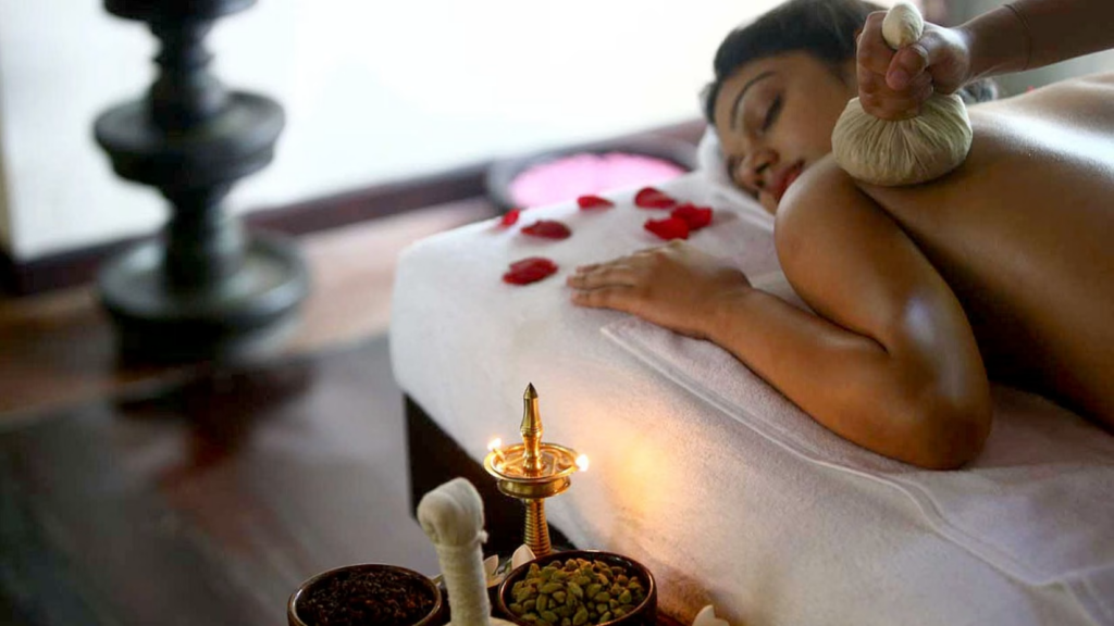 Abhyanga Snana: A rhythmic massage using warm medicated oils to enhance circulation, relieve fatigue, and nourish the skin. Recommended for: Anti-aging, vitality, and detox.