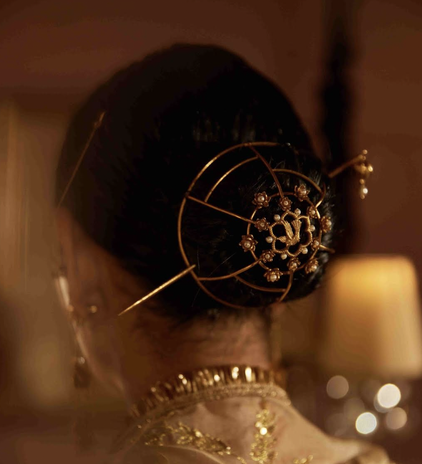 The Yaadon Ka Bageecha Bun Cuff transforms any hairstyle into a sculptural statement. Worn on the Cannes red carpet by actor Chhaya Kadam, this piece is a striking fusion of traditional Indian craftsmanship and contemporary design. Whether paired with a classic lehenga or a contemporary fusion ensemble, it adds poetic charm, depth, and effortless sophistication— making it the perfect finishing touch to elevate your festive look.