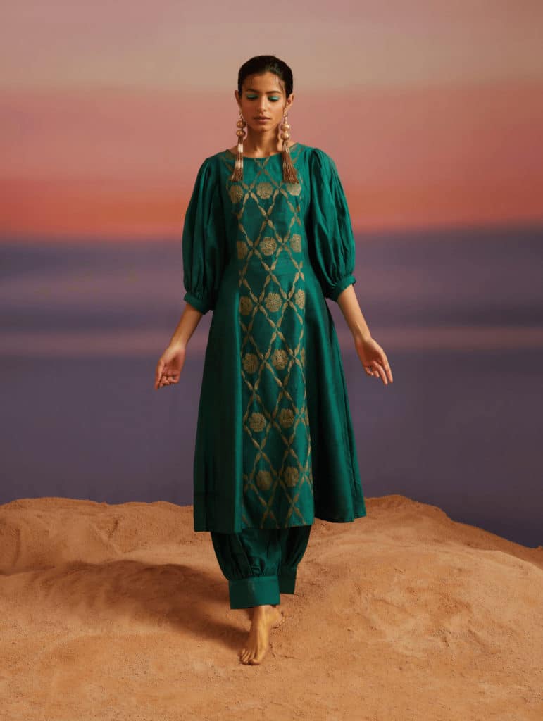 Banarasi Boat-Neck Kurta With Pathani Pants from Abhishti