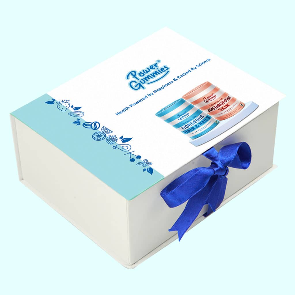‘Shine and Glow’ Combo pack is the perfect gift for someone you dearly care. It includes the products ‘Gorgeous Hair and Nails’ and ‘Jaw Dropping Skin’. Healthy hair and skin are the first thing anyone desires when it comes to physical appearance. These Gummies nourish from within with a variety of nutrients that they possess, making the hair look beautiful and giving skin the glow it deserves. Richness of nutrients with a pleasant taste is the essence of these Gummies. In days where people don’t get time for themselves, what’s better than gifting someone a healthy treat? Bestow them with happiness and health.