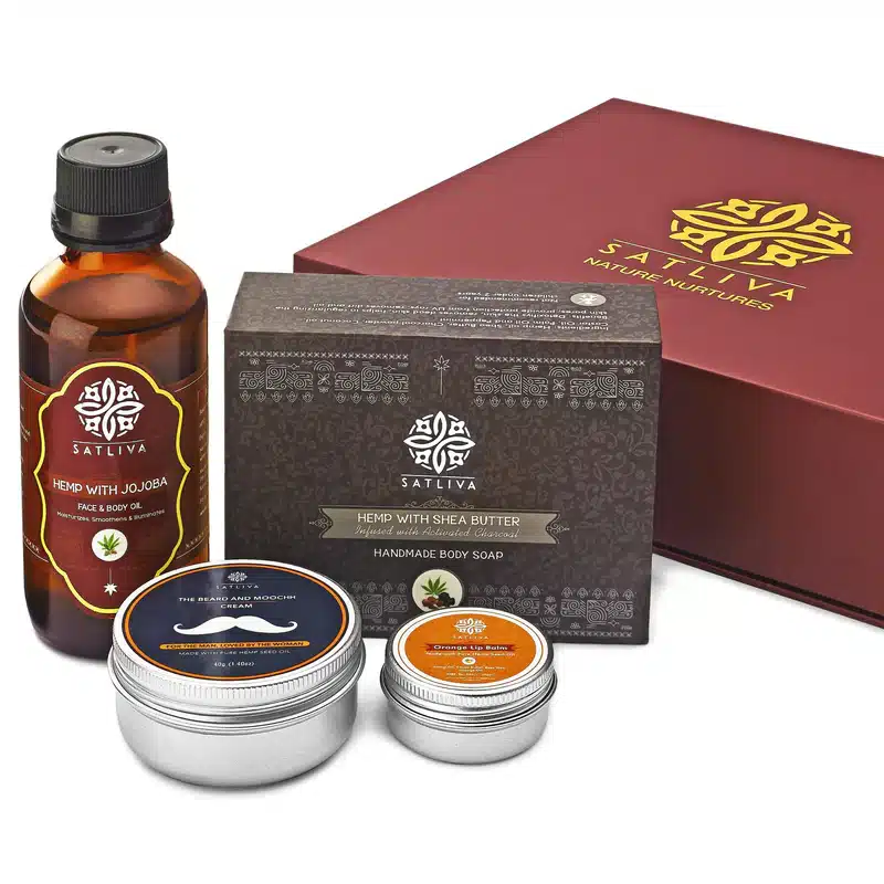 Not only will this combination nourish the mustache and beard, but it will also keep the skin nourished, soft, and moisturized. Each product in this set helps to make your hair and skin softer and more resistant to environmental damage, as well as to remove any impurities. Hemp with Jojoba Face & Body Oil, Hemp with Shea Butter and Activated Charcoal Body Soap Bar, Beard and Moochh Cream, and Orange Lip Balm are all included in this set.