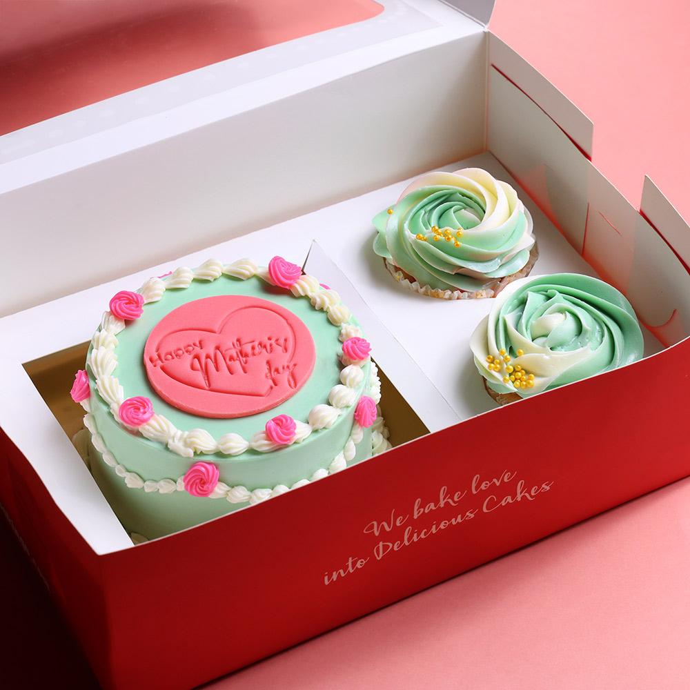 Treat Mum to our delightful Mother’s Day Combo featuring a decadent Milk Chocolate Bento Cake paired with two scrumptious Blueberry Cupcakes in a charming box.