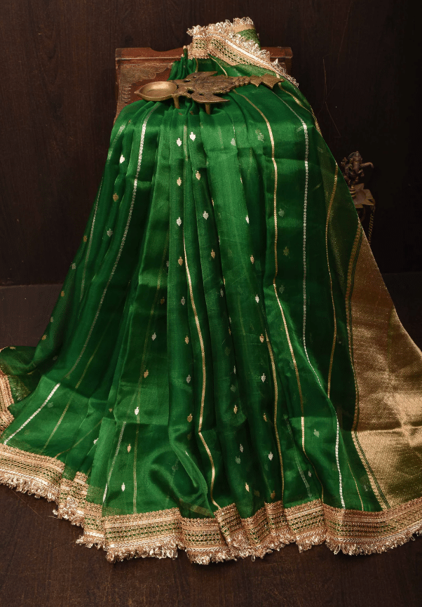 Bottle Green Banarasi Tissue Handloom Saree from Shobitam