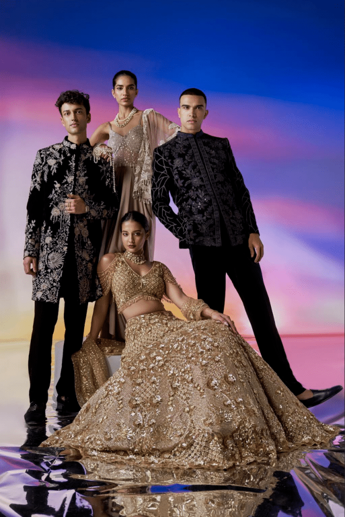 Rooted in heritage craftsmanship and reimagined through a contemporary lens, the Winter Empress Edit brings together rich winter textures, sculpted silhouettes, and intricate handwork. The collection is an ode to regal restraint where velvet, brocade, suede, and silk come together to create pieces that feel composed, confident, and timeless.