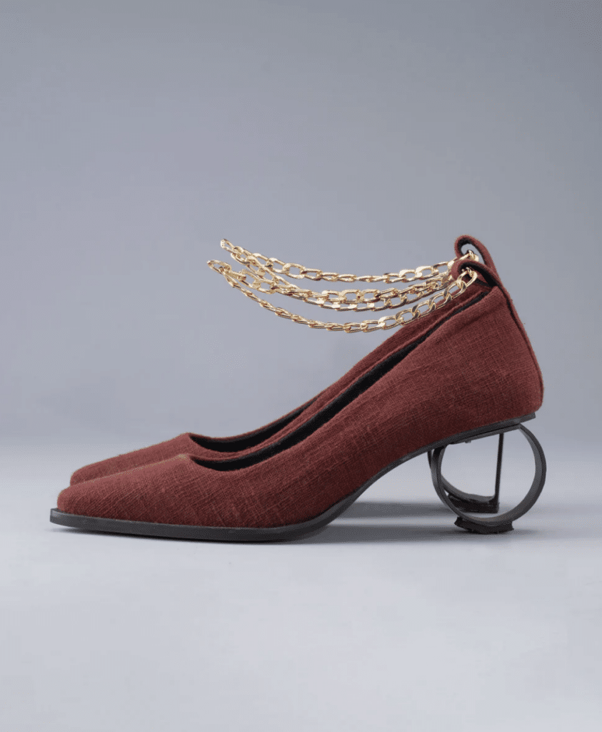 Disobedience’s unmistakable signature – the heels that behave like sculptures, now returns with fresh audacity. Think: chess-piece elevations, spindle-like forms, bent steel in crescent arcs. Pieces that dress the foot but speak to a wearer who collects objects, not accessories.Materiality takes centre stage. Artisan-woven uppers crafted in vegan leather bring a tactile intricacy, grounding the avant-garde with India’s craft lineage. The contrasts are deliberate: softness woven into structure, tradition against rebellion. Eclectic. Playful. Slightly unhinged. This footwear is built for those who don’t just step out but they step forward, set the tone, and let the world follow.