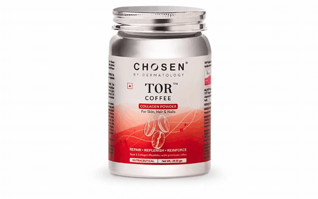 CHOSEN by Dermatology’s TOR™ Coffee Collagen Powder is a sugar-free fusion of real coffee and premium Peptan® marine collagen designed to fuel your skin and body while supporting healthy skin, hair, gut, and joints, and promoting long-term vitality. Formulated to improve skin hydration, elasticity, and firmness, it also strengthens hair, supports growth, enhances gut health, and aligns with your fitness goals. Each serving contains Type I collagen peptides, premium coffee powder, and natural vanilla flavor. With a clean formulation that’s Non-GMO and GRAS Certified, TOR Coffee Collagen is free from common allergens including soy, gluten, and dairy, mercury-free, and made without fillers or sweeteners—just clean, effective collagen.