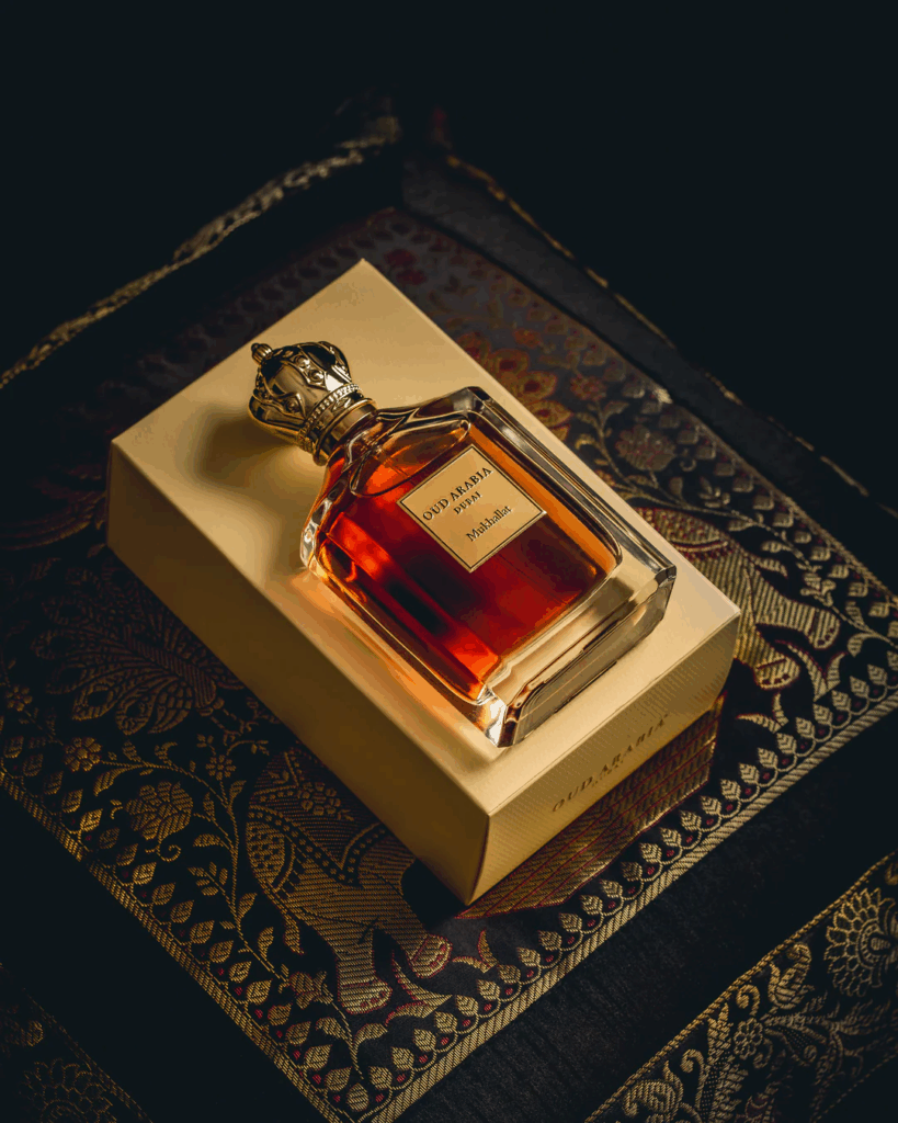 Mukhallat” is a luxurious perfume that embodies the essence of opulence and sophistication.