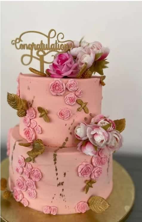 Cakes have become traditional for Indian weddings now (where earlier it was mainly only for Christian weddings) now we do multi-tier cakes for engagements, weddings, receptions – everything. And usually people opt for a lot of colourful and floral cakes for these occassions usually in colours like orange yellow gold red etc. A lot fo themed cakes and cupcakes with bride and groom themed figurines and cupcake toppers have become common too. We do several such sets everything month for wedding platters. Cakes for bridal showers are also an upcoming trend in India.