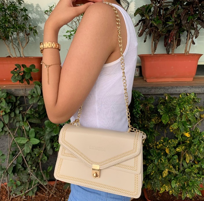 Ryla sling/shoulder bag is a versatile choice for wedding season for brides, bridesmaids, and even wedding guests as it is stylish, durable, and highly functional. It has three compartments with one zip closure, which secures all your wedding essentials from make-up to your phone to any other wedding essentials. “You can dance and run around freely to fulfill your bridesmaids’ duties with no hassle. The evergreen white color paired with gold detailing makes it an ideal choice for all traditional, fusion, and western wedding looks,” says Riya Gurjar, Founder of Emmera.