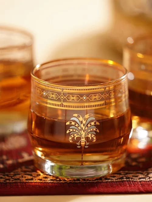 Jaypore presents a scintillating home edit of 24-karat gold-plated glasses to serve up delights. Maira meaning beloved, presents gift-worthy gold-lined glasses for drinks, thandai, juices and more. Printed with 24 karat gold on glimmering glass with patterns inspired by lotus and other beautiful floral motifs, these will add a flourish to every feast.