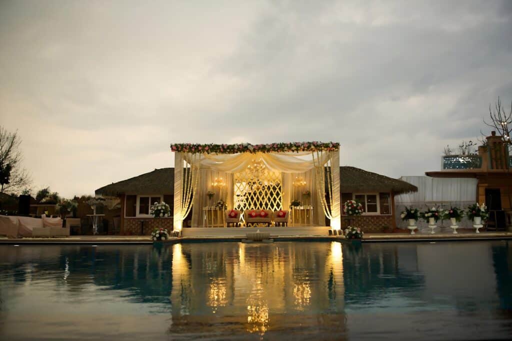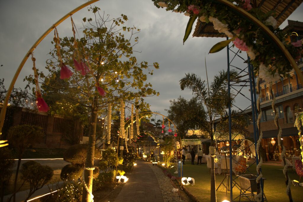 The resort offers a selection of stunning venues, from intimate garden settings to spacious banquet halls for wedding ceremonies and receptions of all sizes. Namaste Dwaar also features multiple lawns on different levels, providing a unique and versatile environment for wedding events. These tiered lawns offer distinct spaces for various functions, such as the mehendi, sangeet and reception, while maintaining a sense of cohesion and flow.