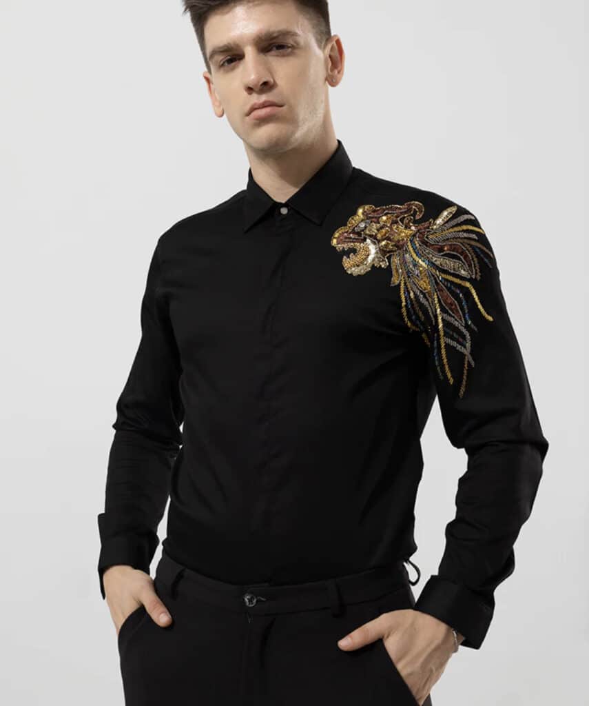 Step into refined elegance with the LEON Black Embroidery Shirt – a statement piece that seamlessly blends sophistication with contemporary flair. This shirt is not just an outfit; it’s a testament to your discerning taste and penchant for sartorial excellence.