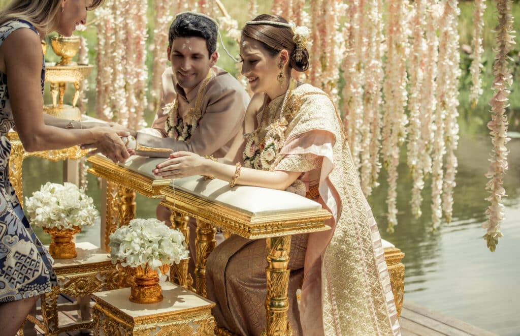 Truly Thai: “Walk through rice paddies holding hands, in a private ceremony with a traditional nine-monk blessing ceremony, led by a village elder,” she suggests. This authentic Thai wedding ritual, complete with wedding garlands and traditional attire, can be conducted at sunrise or sunset, with the mountains as backdrop, for the most dramatic effect.