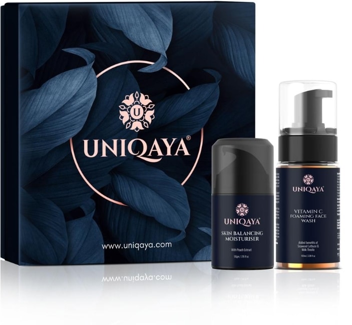 This Rakshabandhan, treat your sibling to a luxurious selfcare gift with Uniqaya’s Vitamin C Foaming Face Wash and Skin Moisturiser Combo Pack – an invigorating Face Care Set your skin will cherish. This duo has Vitamin C Foaming Face Wash and Ultra Hydrating Skin Balancing Moisturiser which helps you acheive a radiant and clear complexion designed to last. With a non-greasy formula, this combo restores skin pH, combats acne, free radicals, and deeply purifies pores. Vitamin C fights aging, pigmentation, while the Hydrating Moisturiser’s Hydromanil tech locks in moisture for 8 hours of suppleness.