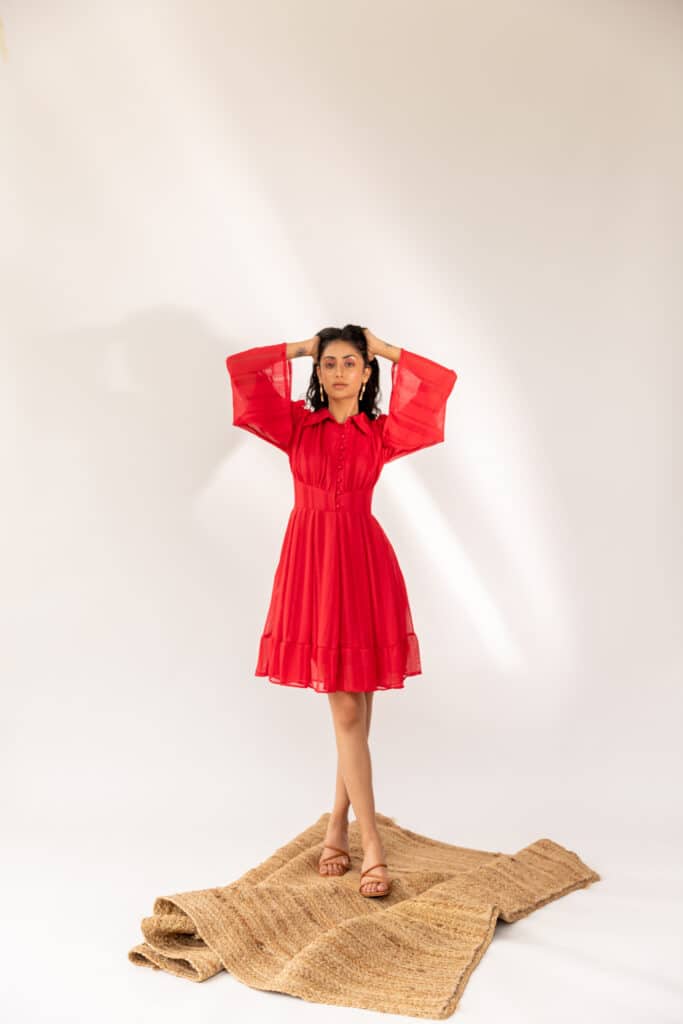 This Carol Dress is a perfect combination of fit and flare dress for a romantic feminine feel. It has a flowy silhouette and is made out of lightweight fabric. With trendy sleeves and pleasant hues, this dress from AADEWS is a perfect addition to your date wardrobe.