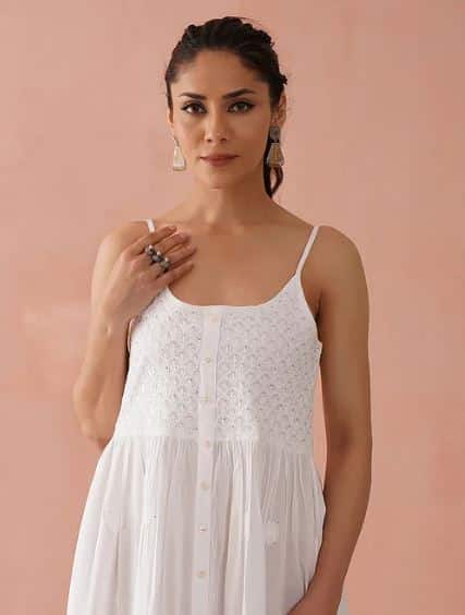Karigars have woven tales of craft in chikankari for over four centuries, resulting in relished royal patronage from the magnificent Noor Jahan to the Nawabs of Lucknow. This cotton mulmul dress is a contemporary take on the timeless chikankari, carrying Mughal motifs and delicate mukaish details, making it a perfect gift for the fashion-forward women of today.