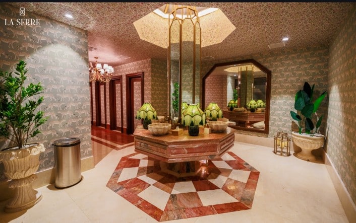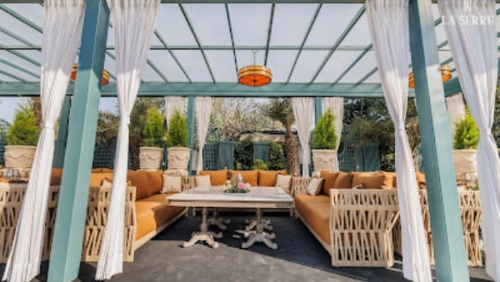 One of La Serre’s greatest appeals lies in its seamless integration of indoor luxury with outdoor beauty. The stylish glass canopy and surrounding greenery offer guests the chance to experience nature while staying sheltered from the cold. The venue’s design, complete with a central olive tree and intimate cabana seating, evokes a sense of romance and charm, making it ideal for couples who want the best of both worlds—nature’s beauty with the comfort of an indoor space.