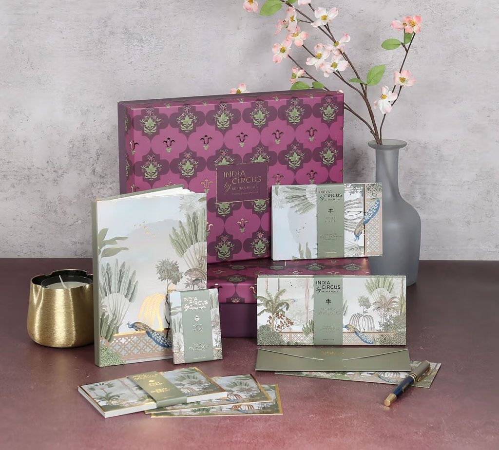 Planning to surprise yourself or your friends and colleagues? Stop by here! Shower yourself with our exclusively designed and curated gift box that comes with Blooming Meadow prints, in an eye-soothing color palette. These products are made of premium kappa boards that are cadmium and lead-free. No matter what, whether you are adding a flair to your daily notes, or celebrating special occasions this gift box from the House of India Circus is sure to infuse style and personality in the use of every piece.