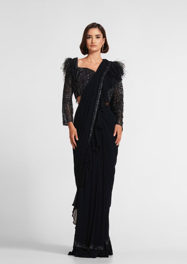 For Her- Don this elegant Indigo Black Georgette Saree, perfectly tailored for those special occasions. The radiant color and soft, luxurious fabric make it a stunning choice for evening functions and parties. This Saree assures a comfortable fit and a gorgeous look, making you the star of the event. Pair it with traditional jewellery for a complete ethnic ensemble.