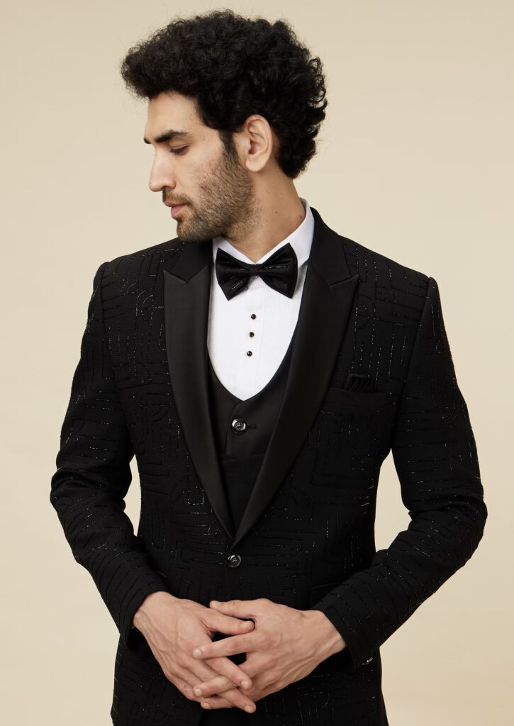 For Him- Flaunt sophistication and charm in this Black Suit Set. Crafted from superior Blended Rayon, the Suit Set consists of a Blazer, Pant, Waist Coat, dignified Shirt, and alluring Bow. Its clean cuts and fitting make it an ideal choice for both formal and semi-formal occasions. Channel your inner gentleman in this marvellous outfit.
