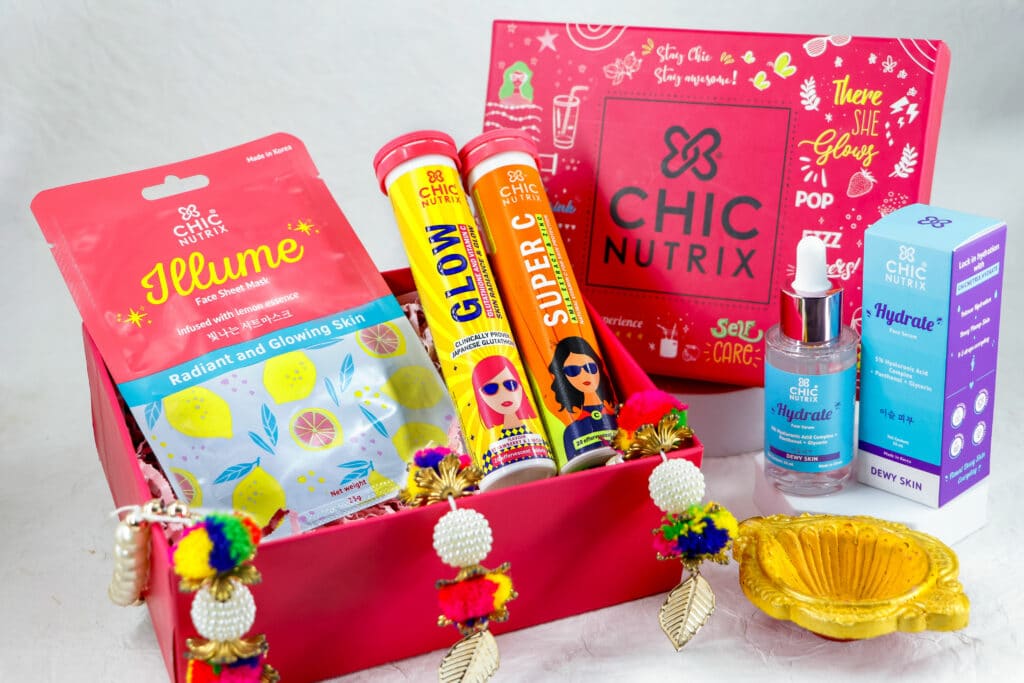 The festival of lights is upon us, and who doesn’t want flawless and glowing skin? Amidst all the preparations for Diwali, self-care takes a back seat. Remind your loved ones to take care of themselves, and their skin above all. After all, who would mind beautiful skin? With everyone’s calendars filling up fast with card parties and Diwali gatherings, give your friends and family the ultimate gift of a healthy glow with Chicnutrix. This Diwali, Chicnutrix brings you their range of Diwali gifting options, including Chicnutrix Glow, Chicnutrix Super C, Chicnutrix Illume Sheet Mask, and Chicnutrix Hydrate Serum.