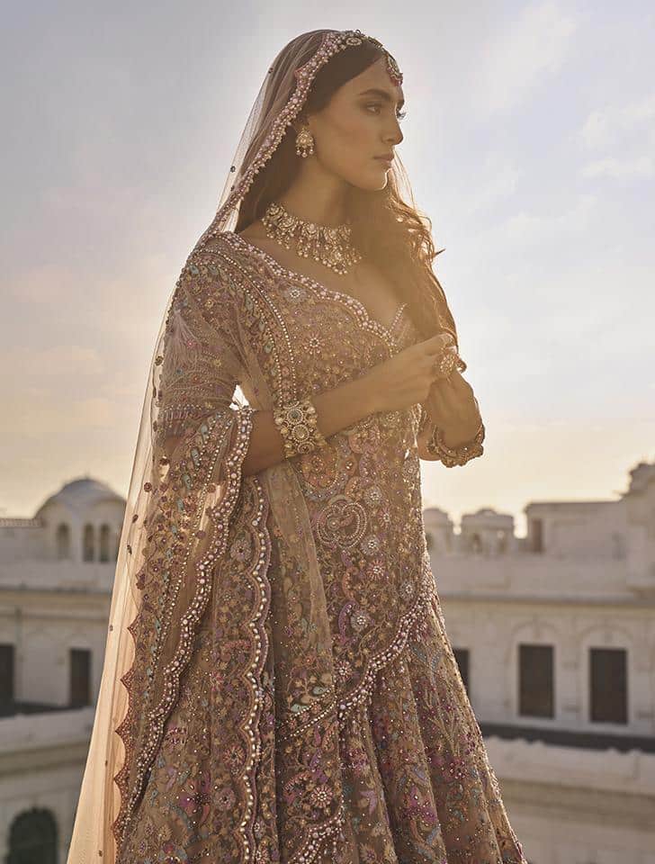 From couture lehengas to bejewelled accents, smoky mocha lids, and butter-soft handbags, here’s how to weave this intoxicating shade into every part of your bridal wardrobe.
