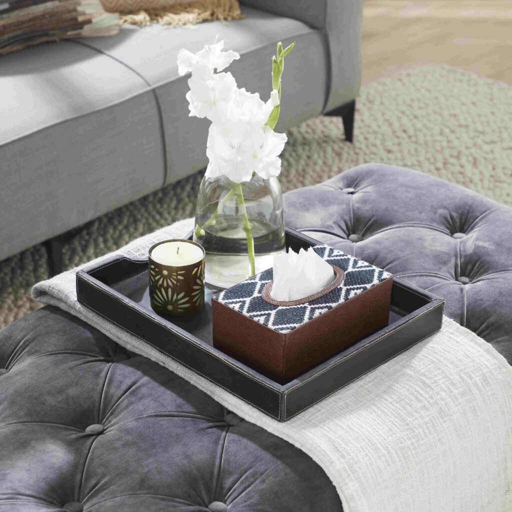 Mona B brings to you a range of trendy tissue paper boxes to spruce up your dining room. The durrie looks sublimation details make it a worthy pick. It is lightweight, yet sturdy and durable