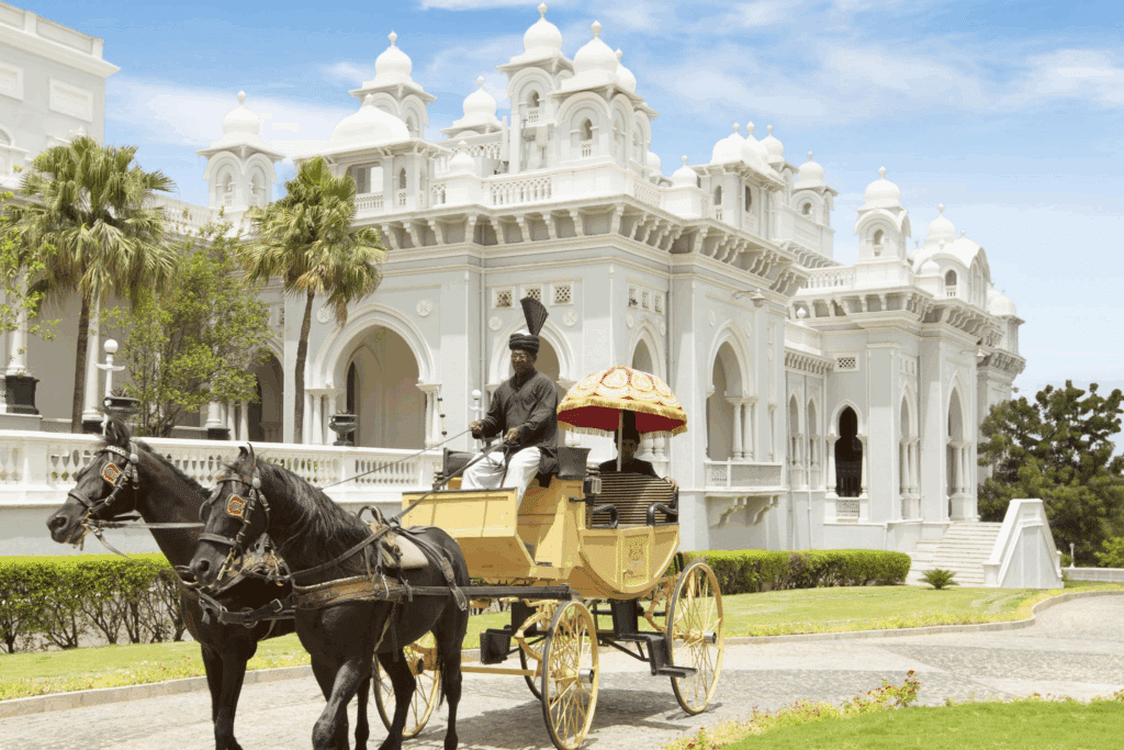 Perched 2,000 feet above Hyderabad, Taj Falaknuma Palace is Diwali grandeur redefined. Once home to the Nizam, it dazzles with Venetian chandeliers, marble staircases, and dining experiences straight out of royal lore. From bespoke butler service to private terrace dinners overlooking the city’s fireworks, every detail turns your festive stay into a regal memory.