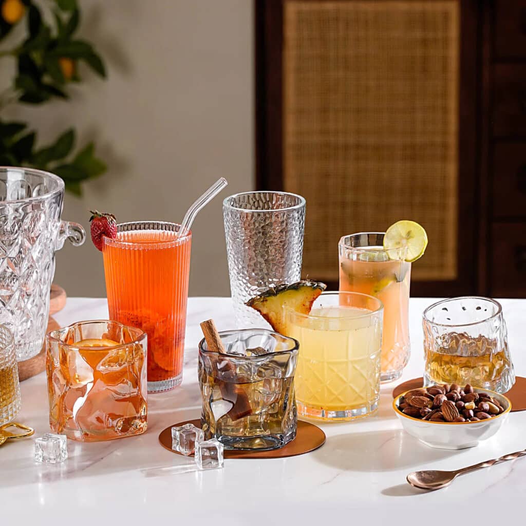 - Highball Glasses: For cocktails like the Mojito and Tom Collins.