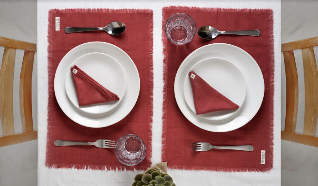 In the spirit of festival celebrations, we made a Khadi tableware collection that falls in the category of thoughtful gifting. Let me explain why. In today’s hustle, where homes echo with laughter during cosy gatherings, our khadi table runners, mats, and napkins in red, green and beige colours stand as meaningful presents—both practical and infused with the warmth of tradition and heritage.