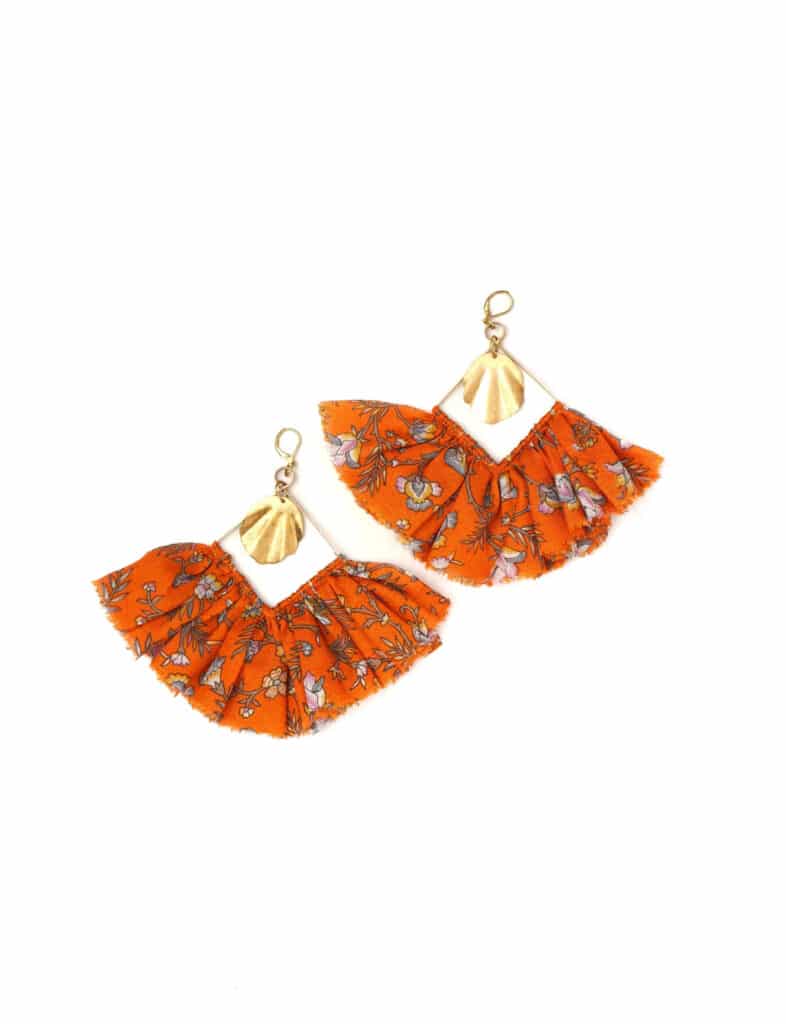 Add some drama with I was a Saris’ Maxi square earrings. They come with fabric frill and metallic charm and feature a raw edge. Our metal hooks are hypoallergy tested and skin-friendly, nickel and lead-free. A homegrown Indian brand is revitalizing traditional aesthetics for the contemporary era. Transforming pre-loved saris and surplus fabrics into lively creations, the brand offers a global array of vibrant products.