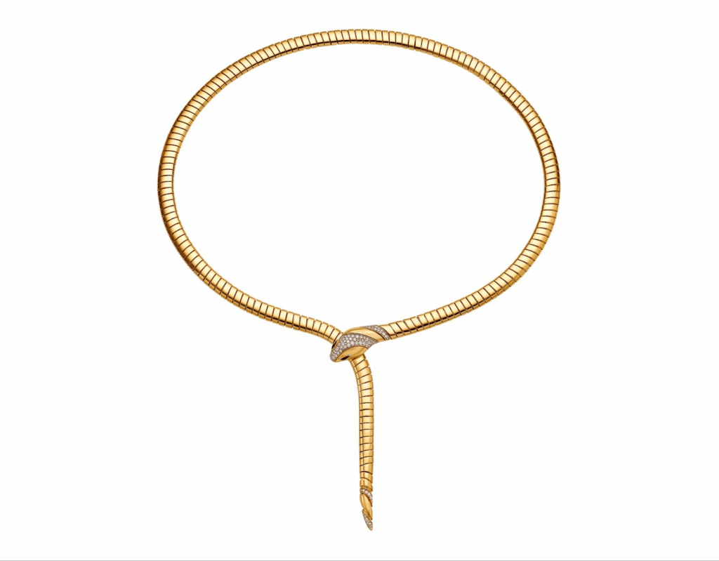 BVLGARI Serpenti Tubogas Necklace– Serpenti 18 kt yellow gold necklace set with demi pavé diamonds on the head and the tail, and black onyx eyes