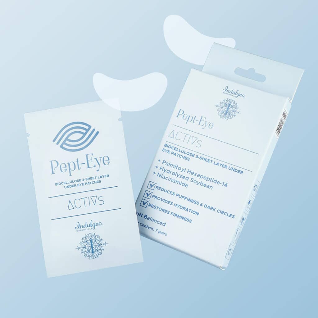 Delight your under eyes with a smooth and radiant look with Pept-Eye Biocellulose Under Eye Patches from Indulgeo Essentials. Its special features & three-layer structure that is empowered with natural fiber material, deliver nutrition deep into the skin. Made from fermented coconut water, these patches help reduce puffiness, and dark circles, minimize the appearance of wrinkles, and give hydration to the skin around your eyes. Crow’s feet are a natural part of getting older, but with frequent use of Pept-Eye, you can treat its appearance and achieve tightened skin!