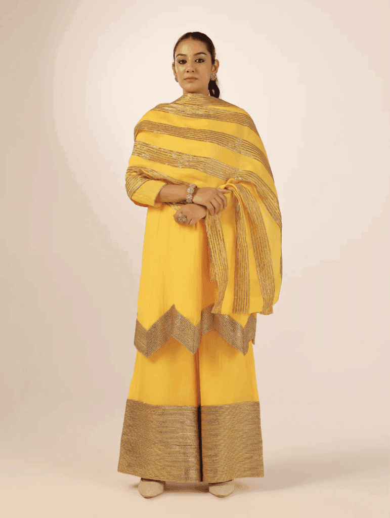 Avni Mustard Ensemble – Kurta, Sharara & Odhani (Set of 3)