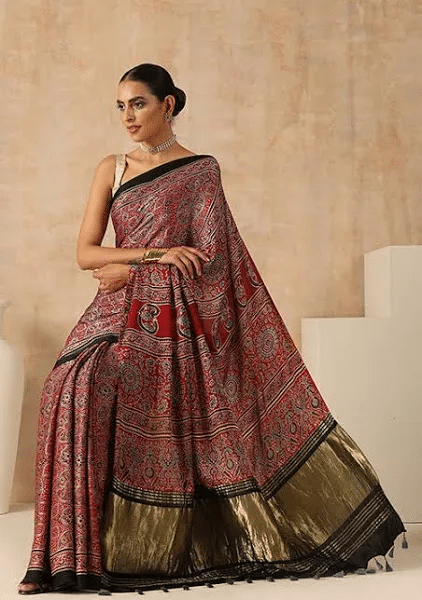 Shop Here: Red Ajrakh Saree Price: INR 8015