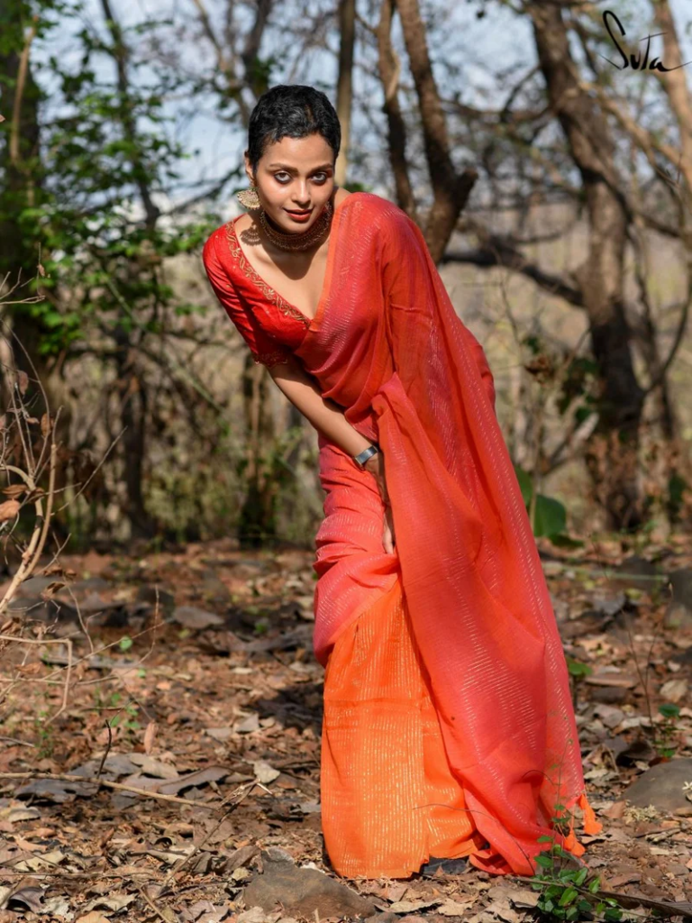 By day, you’re a burst of sunshine – chirpy, bubbly, and radiantly feminine. But as twilight falls, your enigmatic side emerges – a dark artist, a femme fatale, the mistress of the night. This saree celebrates the beautiful complexity that is uniquely you.