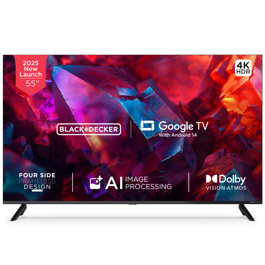 This Rakshabandhan go beyond the usual and gift your sibling an experience they’ll cherish every day. The BLACK+DECKER 55 inch premium Google TV from the A1 Series, with its stunning 4K Ultra HD Dolby Vision display, Dolby Atmos sound, sleek frameless design and the latest Google TV powered by AI. It will transform the everyday viewing to a cinematic experience. Whether its family movie nights, next gen gaming with ultra smooth 20Hz VRR or personalized content for every member this TV is more than a gift, it’s a gateway to unforgettable moments together.b