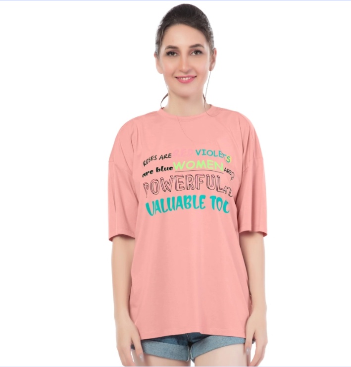Cotton Empowered Elegance Oversized T-Shirt in Peach by Juliet @ ₹699/-