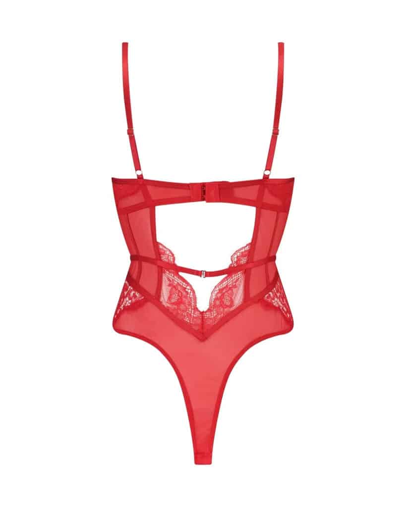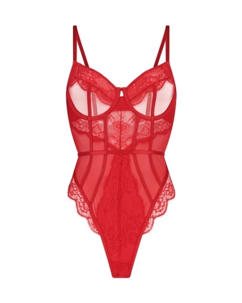Feel super confident in your body! With an all over semi-transparent look. There is lots of lace on the front, back, and sides, as well as on the unpadded cups. The frontal and back boning structure guarantees a snatched and supported look.