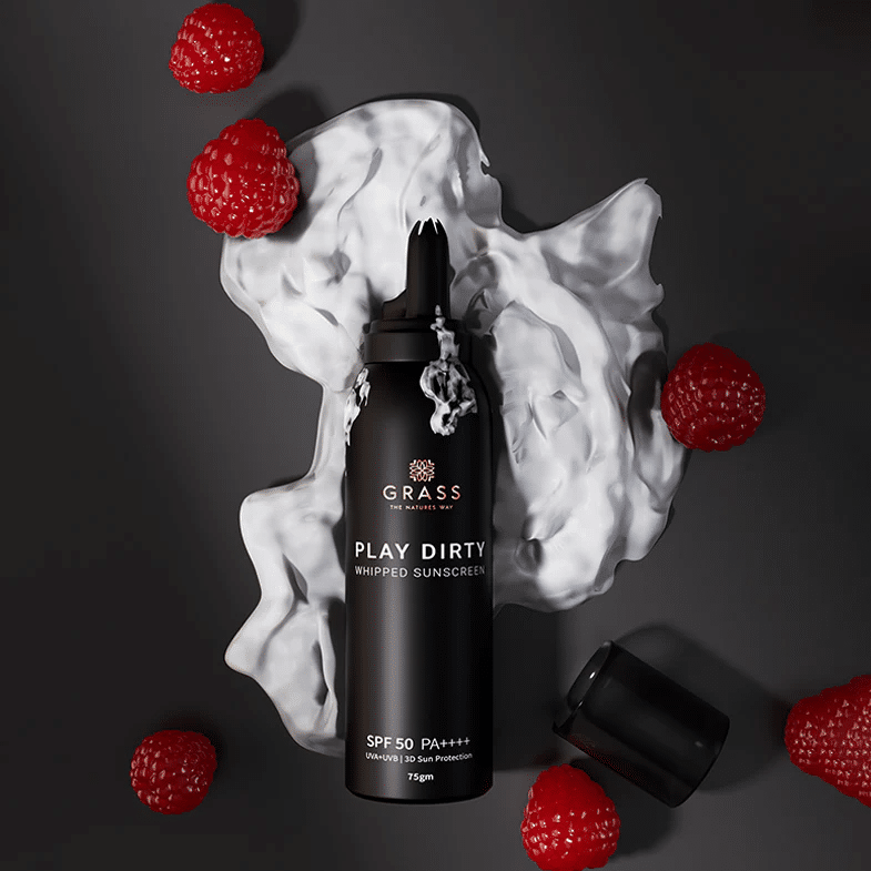 - Grass – India’s First Whipped Sunscreen: A new-age sunscreen with SPF 50+ and PA++++, presented in a whipped cream texture that blends effortlessly into the skin. Rich hydrating ingredients with advanced UV filters, offering 3D sun protection without leaving any white cast on all undertones.
