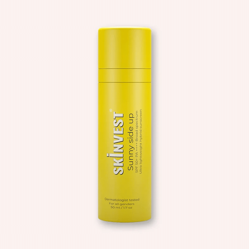 - Skinvest’s Sunny Side Up Ultra Lightweight SPF 50+ PA ++++ Sunscreen: Sunny Side Up’s unique formulation ensures that applying sunscreen is no longer a tedious task. With just one swipe, this luxurious, lightweight innovative texture—nestled perfectly between a gel and a cream—spreads effortlessly, blending seamlessly and leaving no white cast. Enriched with Vitamin C and Titanium Dioxide for maximum protection, this sunscreen is alcohol-free, ensuring no stinging and pilling, with a non-sticky texture. Its travel-friendly packaging makes it a convenient choice for daily sun care.
