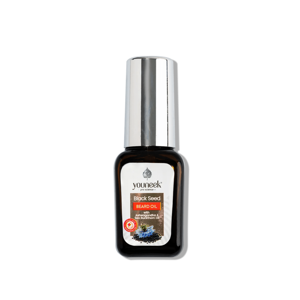 - Beard Oil: Your beard deserves special care too. Use Youneek Pro Science’s Beard Oil to keep it soft, hydrated, and itch-free. This premium oil blend not only conditions your beard but also nourishes the skin underneath, preventing irritation. Youneek’s beard oil, infused with Black Seed, Ashwagandha, and Sea Buckthorn, has been tailored especially to meet the coarse growing facial hair demands by nourishing and softening the beard for manageability.