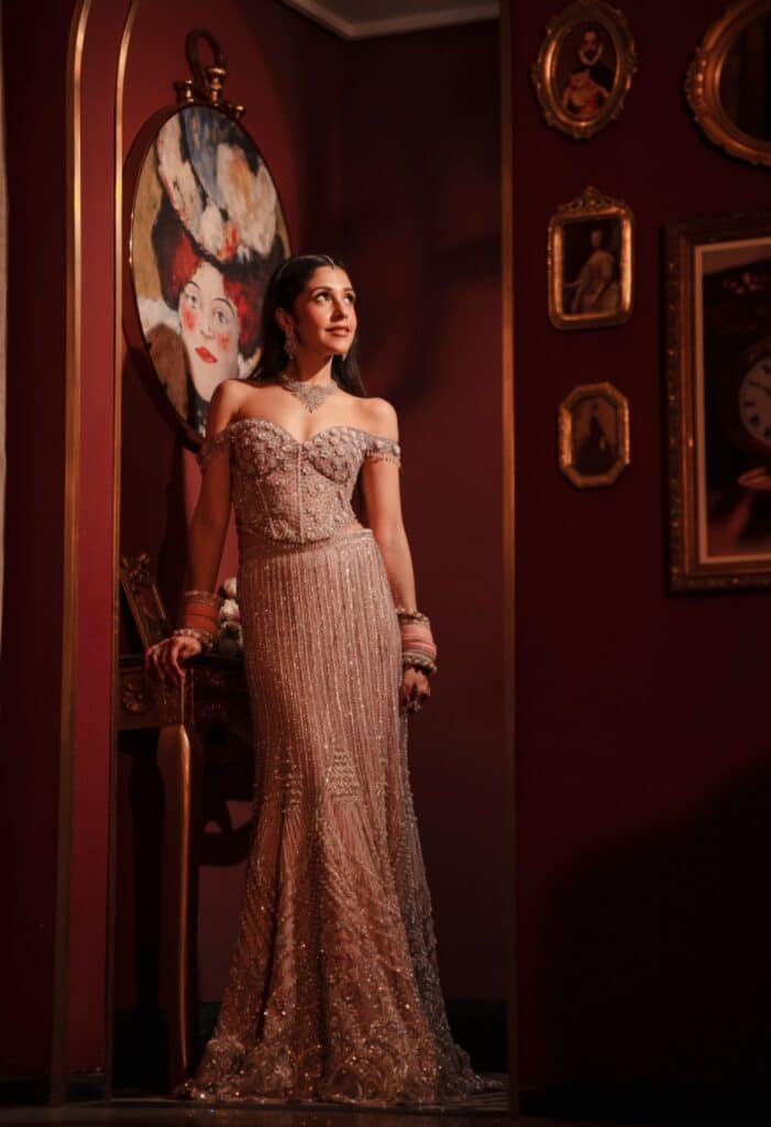 For this, Siya designed a lilac lehenga for herself—soft, understated, and beautifully detailed. Instead of a traditional silhouette, she went with a fishcut style, which felt lighter and more natural to carry. It was one of those looks that didn’t try too hard, yet stayed with you—elegant in the most effortless way.