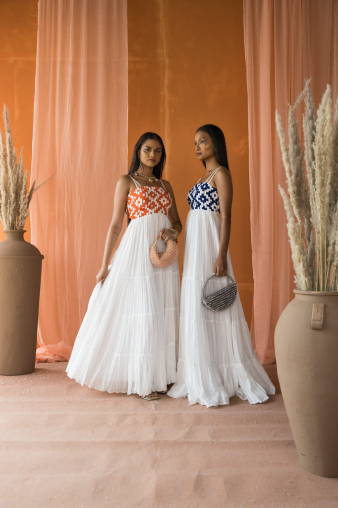 Maya Long Gathered Dress – Elevate your resortwear with the Maya Dress from Shivanii, crafted from pure mull cotton and featuring a handwoven bustier for an artisanal touch. Its long, gathered design offers elegance and comfort, with a side zip, elastic back, and adjustable straps for a customizable fit. Perfect for beach getaways, this timeless piece combines style and support for a flattering silhouette.