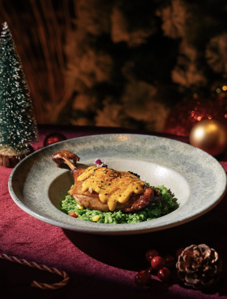 Designed for sharing, the experience moves effortlessly from slow steamed Peruvian corn tamales with punchy house salsa to Nikkei tacos layered with citrus cured fillings and umami forward sauces. Festive highlights include crisp finished slow cooked pork balanced with acidity, a playful Lima prawn cocktail infused with Peruvian lime and chilli, and roasted bone marrow with warm spices meant to be passed around the table. The centrepiece arrives in the form of arroz con pato, a slow cooked duck and herbed rice dish inspired by traditional Peruvian family feasts, followed by a spiced festive cheesecake that feels indulgent yet familiar.