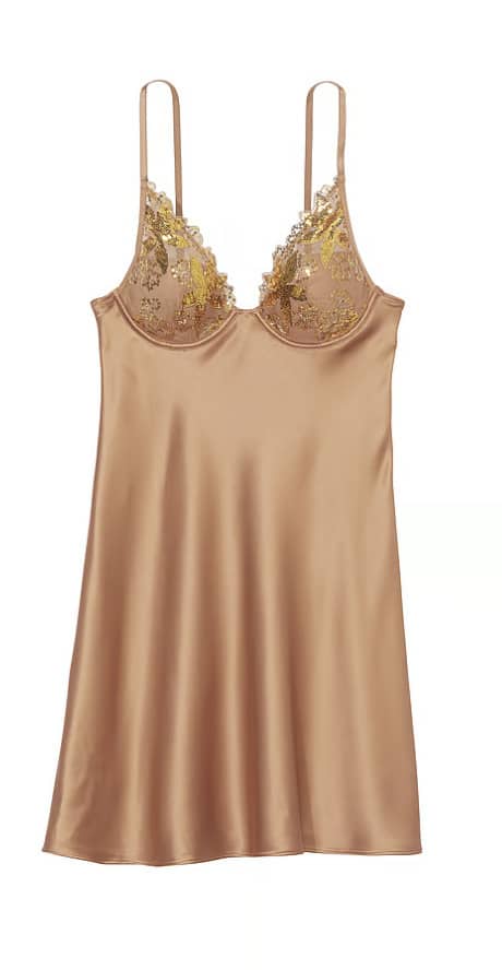 The perfect lingerie underneath the gorgeous bridal trousseau is the perfect embodiment of elegance and allure and Victoria’s Secret bridal lingerie collection promises you that happily ever after. These bridal essentials from Victoria’s Secret transcend mere undergarments; they are timeless treasures for the bride-to-be. The Gold Sequined Ziggy Glam Floral Embroidery Underwire Slip simply skims your curves. The unique sequined floral embroidery on the cups catches the light with your every move.
