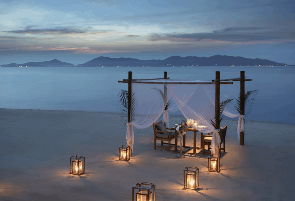 Every detail feels intentional and personal. Whether it’s a flower-strewn bed, a candlelit dinner on the beach, or surprise champagne toasts by moonlight, Santiburi knows how to make love stories feel cinematic. The service is warm and intuitive—quietly present yet never overbearing.