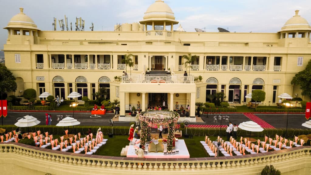- Lower Lawn: Spanning 20,000 square feet, this expansive lawn sets the stage for spectacular wedding ceremonies, complete with traditional Indian dance performances, world-class cuisine, a royal bagpiper band, and even a regal dancing horse.