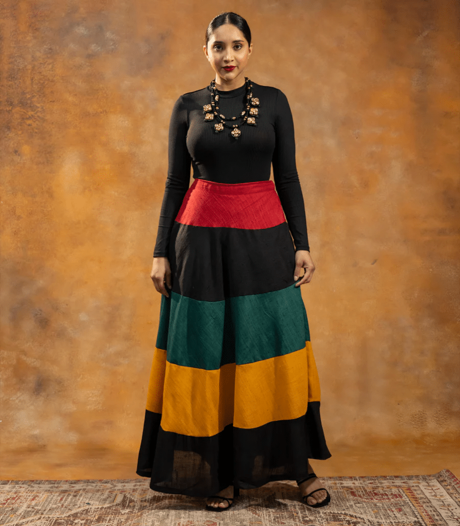 The Fiza skirt from The House of Surkh makes a thoughtful Rakshabandhan gift with its blend of chic style and comfort. Crafted from khadi viscose fabric, this multicolor long skirt is perfect for any occasion, offering a stylish yet comfortable wardrobe upgrade. Elevate your sibling’s look with this elegant and versatile piece. Priced at 4249 INR
