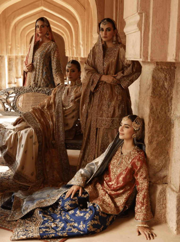 Each ensemble is handcrafted with gota patti, sequins, zardosi vines, and 3D floral motifs, inspired by timeless dupatta traditions. From flowing trails perfect for pheras to lightweight silhouettes ideal for sangeets and mehendis, the collection balances nostalgia, comfort, and couture precision.